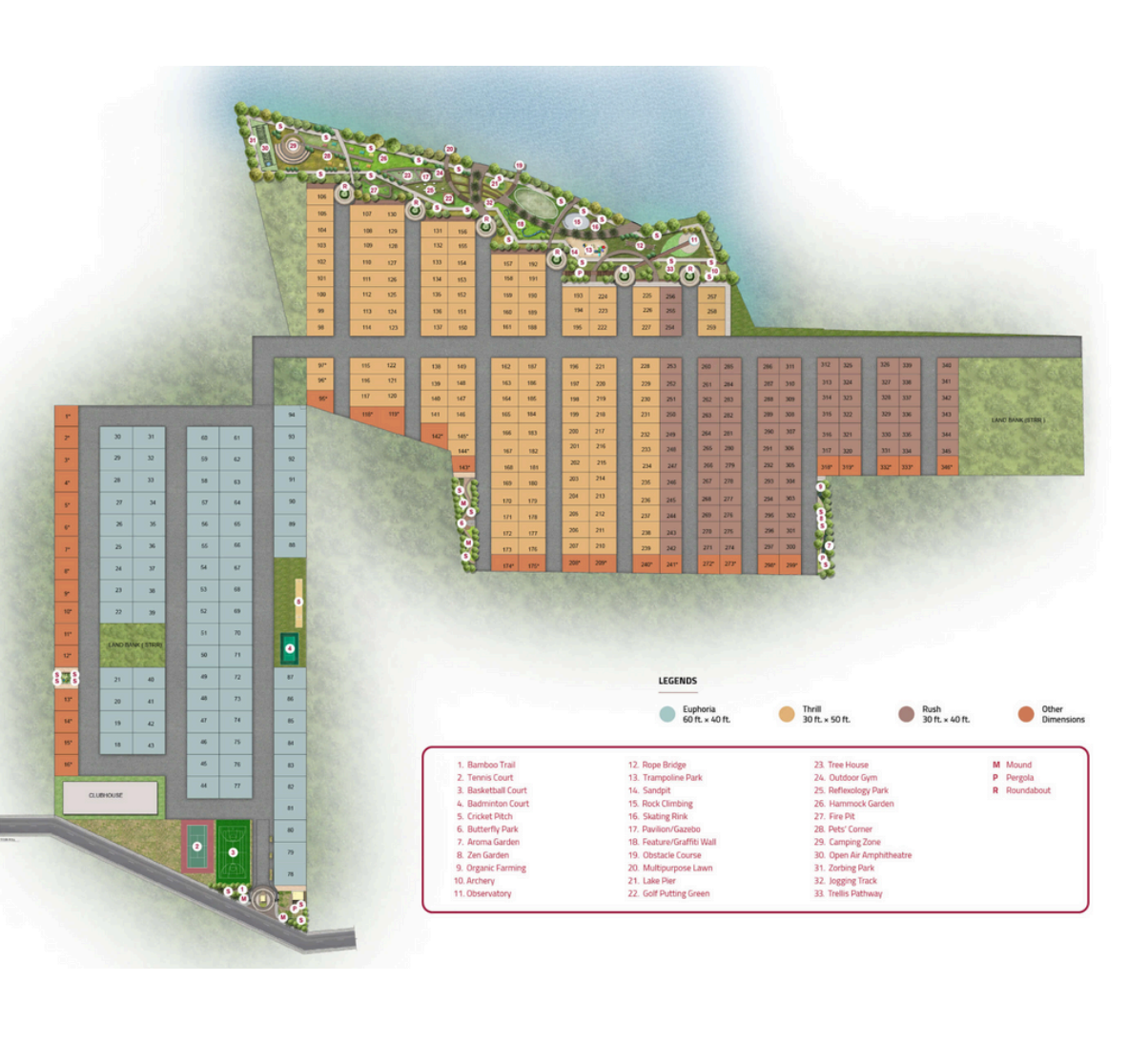 Century Trails has a low-density layout, 60% open spaces, and over 30 adventure-themed lifestyle amenities, which include camping, an Obstacle course, Zorbing Park, Archery, Rock Climbing & Rope Bridge, Rope bridge as daybreak activity & an observatory deck, lake pier, Trellis pathway & tree house as nightfall activity.