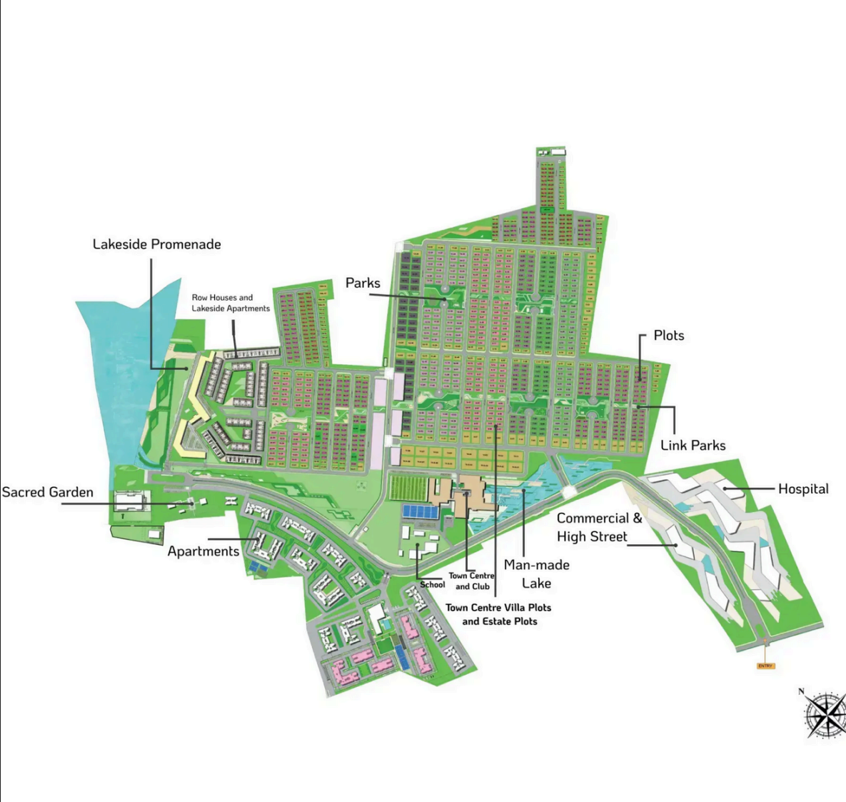 Within the Embassy Springs township. Launched as part of the township’s phased development, this under-construction project offers limited-edition town center villa plots, estate plots, and standard plots,